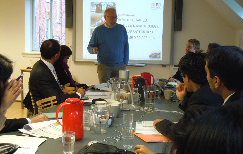 In a meeting with the Danish Institute of Parties and Democracy (DPID), the delegation was briefed by the working of the DPID by Mr. Bjorn Forde, Director, Danish Institute of Political Parties and Democracy (DIPD). Explaining the role of DIPD in bringing ‘the Danish way’ of Democracy to developing democracies, Mr. Forde said that the body exists as autonomous and independent institution. The Board of Directors (BoD) is of 15 members for a period of four years, who makes decisions on all partnerships. The vision of DIPD includes democracy with development rather than waiting for countries to attain developmental maturity and then creating a democratic system. This aim is carried out by facilitating increasing accountability and increasing political participation and representation by facilitating the role played by indigenous political parties. The DIPD is currently carrying out extensive programmes of capacity development and funding in Myanmar, Nepal and Bhutan. |