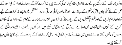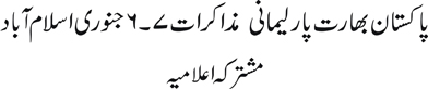 The Pakistan-India Parliamentarians dialogue took place in Islamabad on January 06-07. The parliamentarians of the two countries held a constructive, candid and comprehensive dialogue while recognizing the importance of their role in removing the trust deficit in the areas that divide the two countries. This would be done by building on commonalities and the positives with a view to resuming the dialogue and promoting a peoples movement for peace and reconciliation.