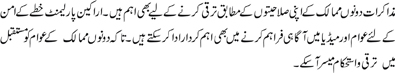 Dialogue is also important for the two countries to achieve their potential. The parliamentarians are in the best position to influence public opinion and media in terms of raising the consciousness of the people of the two countries on the gains to peace so that they can look forward to a future of prosperity for the people of the two countries in the 21st century. |