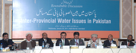 Leading water experts from all provinces including Mr. Muhammad Idrees Rajput, former Secretary Irrigation Sindh, Mr. Mohammad Amin, Member IRSA, Balochistan, Rao Irshad Ahmad, Chairman IRSA Mr. Raqeeb Khan, Member IRSA Khyber Pakhtunkhwa, and Mr. Shams-Ul-Mulk, Former Chief Minister Khyber Pakhtunkhwa and chairman WAPDA, made presentations on different view points on inter provincial water issues.
