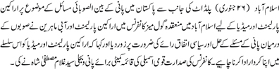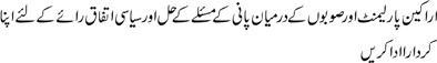> Parliamentarians and Media should play role in conflict-resolution and political consensus-building among Provinces on Water Issues