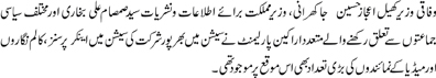 Mr. Ejaz Jhakrani, MNA, Federal Minister for Sports and Syed Samsam Ali Bhukhari, MNA, Minister of State for Information, alongside a large number of MPs from various political parties participated in discussion alongside various TV anchors, columnists and media representatives. |