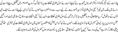 Mr. Shahid Hamid, who also wrote a paper on the topic upon return from the Study Visit, in his overview on civil military relation in Germany, said that German military operates completely under the civilian and Parliamentary command. While there are many lessons to learn from that system, the two countries provide a contrast in practices than similarities. The size and structure of the German Armed Forces is regulated on an annual basis through the annual budget. At what the Germans call the strategic level, the political leadership is provided by its Defence Minister under whom the senior most Armed Forces Officer is the Bundeswehr Chief of Staff. Germany has a National Security Council (NSC) which is a Cabinet Committee headed by the Chancellor and the Bundeswehr Chief of Staff is a permanent �guest� at NSC meetings but not its member. The composition, the functions and the activities of the German Intelligence Services are regulated by the Federal Intelligence Service Act, the Federal Act on the Protection of the Constitution and the Act on the Military Counter Intelligence Service. Each of these Acts contains provisions for Parliamentary scrutiny of the activities of the Intelligence Services. He said that over the last six decades Germany has been able to develop and mature its democratic system under the protective cover of the NATO and the support of the European Union nations. In Pakistan�s context we need �a balance of trust.� The military will have to accept political leadership and refrain from interfering in political affairs. Simultaneously, the Government and Parliament will have to accommodate, on an institutionalized basis, the military�s role in the formulation of policies relating to defence and national security and accept responsibility for decisions taken and policies made. Government and Parliament will also have to refrain from any attempt at micro-management in military affairs and instead focus on ex-post accountability, he said. His complete paper, titled Civil-Military Relations in Germany can be accessed at PILDAT website and was shared with participants at the Briefing. |