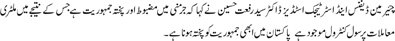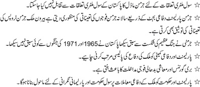 - Parliament and Government must create conditions for Civilian and Parliamentary Oversight of Defence in Pakistan