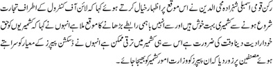 Shahzada Mohiuddin, while speaking on the occasion, was of the opinion that people of both sides of LoC are quite happy after the start the Intra Kashmir trade and it has provided an opportunity to the people across LoC to meet each other. He was of the opinion that Plebiscite is the need of the hour which could enable both sides to prosper. He asked the authors to send these Discussion Papers to Pakistan�s Federal Ministry of Kashmir Affairs. |