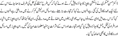 Dr. Hassan-Askari Rizvi said that a practical effort is being made on how to engage in conflict management and conflict resolution. He was of the view that if trade and commerce increase, tension and conflict can be minimized. This creates stakeholders on both sides and allows greater human interaction on the both sides of the LoC .He said that the papers have tried to review the movement of goods and people and have useful information specially on trade and its impact. The Discussion Paper also identifies problems and obstacles |