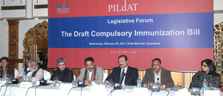 Islamabad, February 09: In a PILDAT arranged Legislative Forum on Critical need to improve Immunization in Pakistan and the Compulsory Immunization Bill, Parliamentarians and MPAs believed that the draft compulsory Immunization Bill is a good initiative to make immunization compulsory for all in Pakistan and respective Governments should table this in the Parliament and Provincial Assemblies for review and adoption by legislators. Experts believed that to eradicate polio a nation- wide awareness campaign should be launched with effective participation of Parliamentarians and media. |