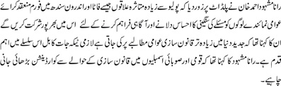 Rana Mashhood Ahmed Khan, MPAbelieved that PILDAT should arrange a forum in polio hit area like interior Sindh and FATA and the public representatives will be willing to join in order to sensitise the people and to spread awareness. He said that in modern world legislation is mostly made on public demand, so compulsory immunization bill is a very good effort in this regard. He was of the opinion that coordination between Parliament and Provincial Assemblies should be enhanced for such legislation. |