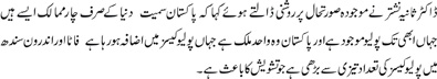 Dr. Sania Nishtar said that Pakistan is one of the only four countries in the world where polio still exists, and Pakistan is the only country where number of polio cases is rising as seen in 2010. In FATA and Interior Sindh polio cases have seen an increase in huge numbers which is a cause for concern. |