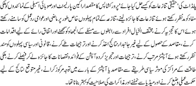 The PILDAT workshops on How to Resolve Real Conflicts? are aimed at helping Parliamentarians and provincial legislators to undertake pragmatic assessment of national interests and goals relating to a conflict; apply conflict and dispute analysis mechanism by reviewing all facets of a situation with particular focus on understanding and contextualising competitor(s) interests and positions keeping in view historical trends and behavioural patterns; understand intricacies involved in multi-lateral interaction and consensus-building in a multiparty fluid setting involving contentious issues; draw objective and relevant conclusions for evolving goals and identifying priorities; develop viable response options amenable to political, popular and legal demands; make decisions and judgments with thorough awareness of the cost and benefit of recommended strategic options and the priorities; draw upon and judicious application of instruments of national power to realize intended response option / objectives in a politically cost effective manner; plan contingencies to take care of unexpected outcome, and harness and hone media and negotiation skills. |