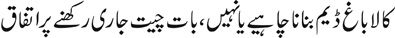 > To construct or not to construct Kalabagh Dam: agreement to continue dialogue