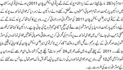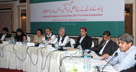 Islamabad, March 28: In a PILDAT arranged National workshop on the National Emergency Action Plan 2011 for Polio Eradication, Parliamentarians and MPAs from all Provincial Assemblies believed that public representatives should effectively monitor and oversee the National Emergency Action Plan 2011 for Polio eradication. �To eradicate polio a nation- wide awareness campaign should be launched with effective participation of Parliamentarians and media,� said experts in the National Workshop. A strategy through which both public representatives take a pro-active role in overseeing the programme as well as Federal and Provincial Governments inform legislators ahead of campaigns to ensure legislators involvement and oversight is crucial to ensuring the success of the National Emergency Action Plan, said Parliamentarians and MPAs. In 2011 so far 24 cases of polio have been detected across Pakistan which is twice as compared to 12 in the same period in 2010 � an alarming scenario believed experts and legislators, and requires effective measures to counter the spread as well. |