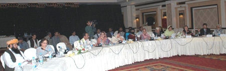 Introducing the Session, Ms. Aasiya Riaz, Joint Director-PILDAT, said that PILDAT has facilitated the formation of Immunization Caucuses for National and Provincial Legislatures in order to facilitate the public representatives and to enhance their awareness and involvement into immunization campaigns. The continued transmission of poliovirus in Pakistan has become a national emergency. Pakistan now risks becoming the last remaining reservoir of endemic poliovirus transmission in the world, and the only remaining threat to achieving global polio eradication. In the light of the situation and its national and global implications, the President of Pakistan has directed the immediate development of an emergency action plan for polio eradication in Pakistan. The Goal of the Emergency Action Plan is to stop transmission of polio in Pakistan by the end of 2011. PILDAT�s objective of holding the National Workshop on the National Emergency Action Plan 2011 to Eradicate Polio is to discuss the importance and need of the plan, to review the strategies for its successful implementation, to identify what role Parliamentarians can play for the success of the plan and to sensitize the civil society and media on this serious issue. She thanked honourable public representatives who especially travelled from across Pakistan to be part of the Workshop. |