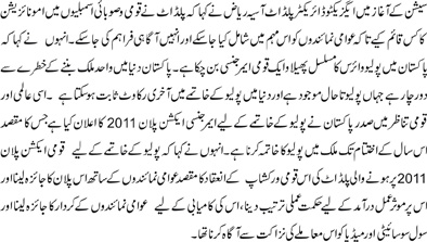 Dr. Azhar Abid Raza, while speaking on the occasion, said that Pakistan is one of the only four (4) countries in the world where polio still exists and Pakistan is the only country where number of polio cases is rising as seen in 2010. He told that 144 polio cases were found in 40 districts across Pakistan in 2010 while during the same period last year in Afghanistan 4 cases were found, 12 cases were detected in India and only I case was found in Nigeria. In 2011, while not a single case has been detected so far in any of these countries, Pakistan has already seen 24 reported as compared to 12 in same period last year. He believed that persistent operational challenges include security and access in FATA, KPK, and Balochistan, increasing fatigue, service delivery and quality, accountability and lake of awareness are major challenges though he believed if public representatives put their weight behind the campaign and effectively oversee and coordinate, Pakistan too can stop the spread of this virus. |