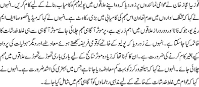 Ms. Fozia Ejaz Khan stressed on the need for public representatives to take interest and work in their own areas to make immunization campaign a successful mission. �Media should run effective awareness campaigns especially an on FM radio that is the main source of information in FATA and other remote areas,� she added. Till we all work on this eradication mission as a national duty regardless of pay and perks and remuneration, unfortunately, this too shall remain a disaster, she said. While chairing the session she said that small pockets of areas should be targeted and campaigns should run in periodic manner to make it more result oriented. She stressed on revision of the honorarium for the field workers associated with the polio campaigns. Religious leaders should be involved in awareness campaigns to overcome misconceptions. |