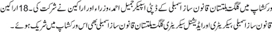 The workshop was attended by Mr. Jamil Ahmed Deputy Speaker GBLA, Ministers and members of Gilgit Baltistan legislative Assembly. Eighteen (18) members of the G-B Legislative Assembly while the Secretary and the Additional Secretary of G-B Legislative Assembly also took part in the simulation exercise. |