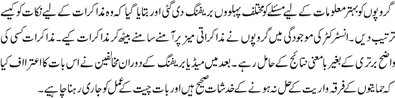 Groups were briefed on how to understand the contours of a conflict and prepare negotiation points in each group. Actively assisted by the Conductor on the strategies of negotiations, they faced each other on the negotiation table. Skilfully managed, the talks achieved meaningful result and the opponents agreed in a media debrief that the proponents had valid concerns about the lack of development on sectarian conflict and that talks must continue. |