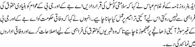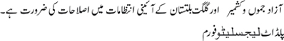 Mr. Ghulam Abbas, Editor Daily K2, said that UN Security Council doesn�t deny fundamental rights to the people of AJK and GB therefore these constitutional amendments should be considered. Federal Government needs to be shaken out of its apathy towards current insufficient constitutional status of AJK and GB and carry out reforms for enhancing citizens rights and representation within federal structure.