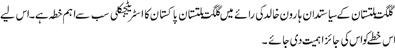 Mr. Haroon Khalid, politician from GB, commented that Gilgilt Baltistan is strategically most important part of Pakistan; therefore this region should be given its due importance.