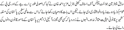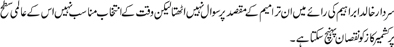 Sardar Khalid Ibrahim, politician, was of the view that the spirit of the proposed amendments is not questioned but its timing is not appropriate and it will be harmful for Kashmir cause internationally.