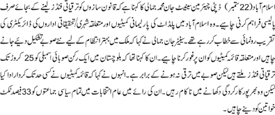 > Legislators should give policy for development rather getting funds. Senator Jan Jamali