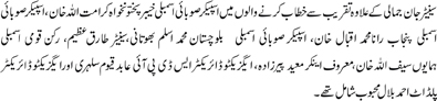 Other then Senator Jan Muhammad Jamali, participants who spoke on the occasion included Honourable Mr. Karamat Ullah Khan, Speaker Provincial Assembly Khyber Pakhtunkhwa, Honourable Rana Muhammad Iqbal Khan, Speaker Provincial Assembly Punjab, Honourable Mr. Muhammad Aslam Bhottani, Speaker Provincial Assembly Balochistan, Honourable Mr. Humayun Saifullah Khan, MNA, Honourable Senator Tariq Azeem, Dr. Moeed Pirzada, prominent anchorperson and senior analyst, Mr. Abid Qaiyum Sulehri, Executive Director, SDPI and Mr. Ahmed Bilal Mehboob, Executive Director PILDAT.