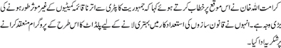 Honourable Muhammad Aslam Bhootani, believed that this directory is indeed a very important document, which will help bridging gap between Parliament and Civil Society. He admitted that unfortunately there are no standing committees functional in Balochistan after 2008 elections because almost the entire Assembly is part of the Provincial Cabinet, so not many members left to formulate standing committees. |