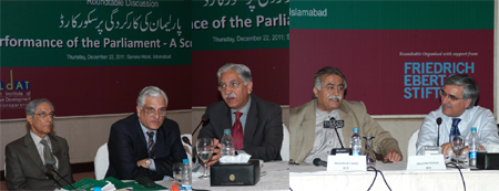 Islamabad, December 22; Performance of the Parliament of Pakistan was evaluated to be at 44% in an evaluation by Parliamentarians and others, revealed PILDAT. The performance evaluation has been facilitated by PILDAT using an international framework on evaluating performance of Parliament developed by International Parliamentary Union. The evaluation scores were shared by PILDAT in a Roundtable Discussion on Performance of Parliament here today. |