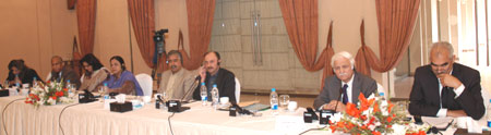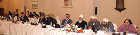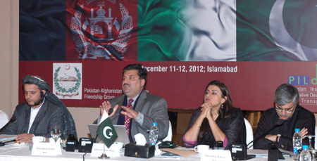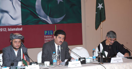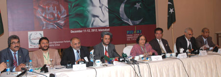 Pakistani MPs belonging to different parties participated in the dialogue including Honourable Mr. Faisal Karim Kundi, MNA, Deputy Speaker of the National Assembly and convenor of the Pakistan-Afghanistan Parliamentary Friendship Group, Senator Muhammad Jehangir Bader, Leader of the House, Senate of Pakistan, Senator Raja Zafar ul Haq, Chairman PML-N, chairman Senate Standing Committee on Industries and Production, Senator Haji Muhmmad Adeel, Senior Vice President of Awami National Party-ANP and Chairman Senate Standing Committee on Foreign Affairs, Senator Farhatullah Babar, (Khyber Pakhtunkhwa, PPPP), Senator Abdul Nabi Bangash, (Khyber Pakhtunkhwa, ANP), Senator Hasil Khan Bizenjo, (Balochistan, NP), Senator Amar Jeet, (Khyber Pakhtunkhwa, ANP), Senator Najma Hameed, (Punjab, PML-N), Senator Najam ul Hassan (FATA, Ind.), Senator Saeeda Iqbal, (Islamabad Capital Territory, PPPP), Senator Muhammad Saleh Shah Qureshi, (FATA, Ind.), Senator Nuzhat Sadiq, (Punjab, PML-N), Ms. Qudsia Arshad, MNA (NA-275, Women, Punjab, PML-N), Ms. Tahira Aurangzeb, MNA (NA-276, Punjab, PML-N), Mr. Naseer Bhutta, MNA (NA-127, Lahore-X, Punjab, PML-N), Mr. Riaz Fatiana, MNA (NA-94, Tobatek Singh-III, Punjab, PML), Ms. Jamila Gillani, MNA(NA-323, Khyber Pakhtunkhwa, ANP), Mr. Abdul Rasheed Godil, MNA (NA-252, Karachi-XIV, Sindh, MQM), Mr. Muhammad Rehan Hashmi, MNA (NA-245, Karachi-VII, Sindh, MQM), Mr. Asif Husnain, MNA (NA-255, Karachi-XVII, Sindh, MQM), Ms. Seema Jameeli, MNA (NA-277, Punjab, PML-N), Mr. Khurram Dastgir Khan, MNA (NA-94, Gujranwala-II, Punjab, PML-N), Mr. Iqbal Muhammad Ali Khan, MNA (NA-256, Karachi-XVIII, Sindh, MQM), Ms. Shireen Arshad Khan, MNA (NA-283, Punjab, PML-N), Mr. Abdul Qadir Khanzada, MNA (NA-242, Karachi-IV, Sindh, MQM), Ms. Shagufta Sadiq, MNA (NA-319, Sindh, MQM), Ms. Imrana Saeed, MNA (NA-318, Sindh, MQM), Dr. Muhammad Ayub Shaikh, MNA (NA-254, Karachi-XVI, Sindh, MQM), Ms. Tasneem Siddiqui, MNA (NA-285, Punjab, PML-N), and Ms. Saira Afzal Tarar, MNA (NA-102, Hafizabad-I, Punjab, PML-N). |